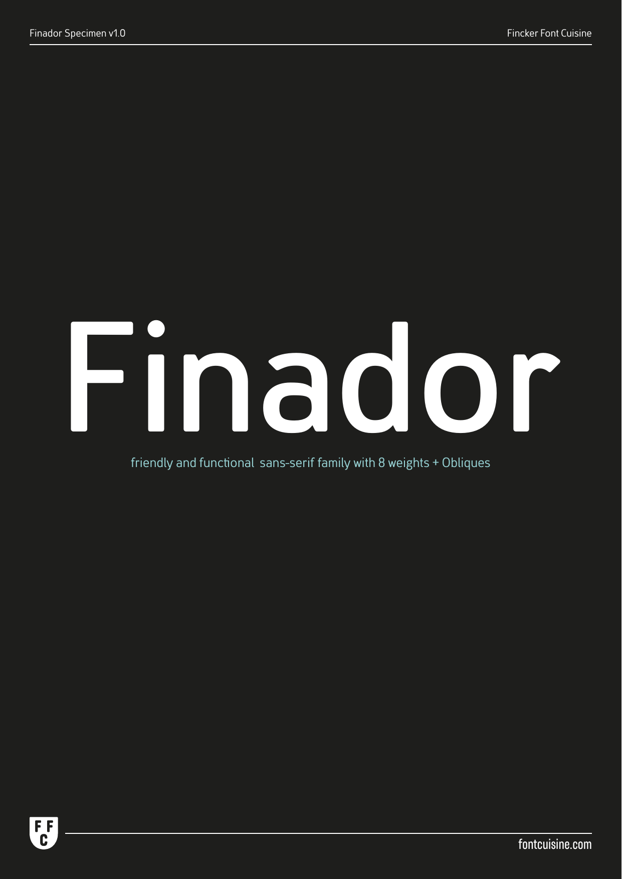 Finador is a modern and soft sans family. The functional style of a geometric sans has been soften by open apertures and rounded corners. This makes it functional and friendly.