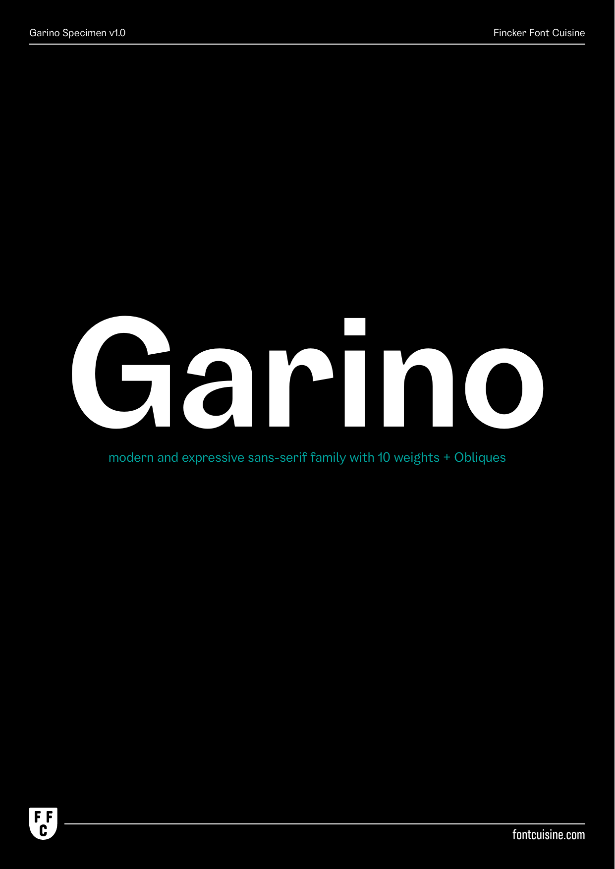 Garino is a modern sans-serif typeface family. It gains its expressive character from a dynamic sweep in the curves and high-contrast transitions.